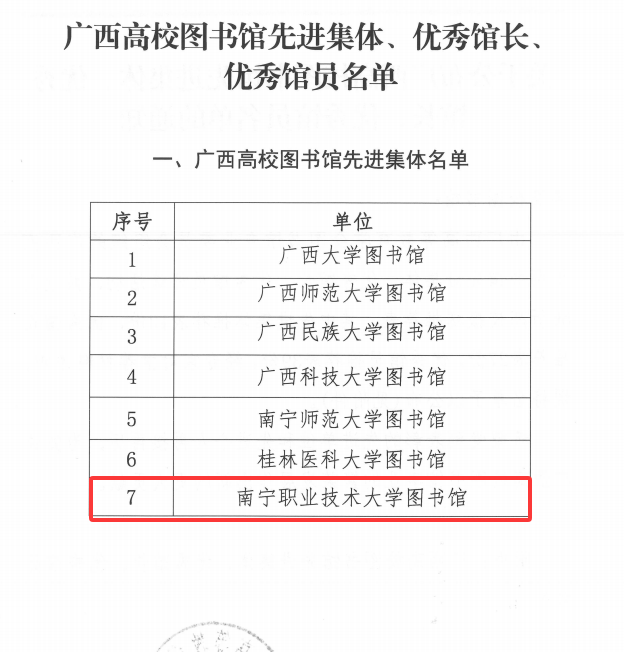 我校图书馆获得广西高校图书馆“先进集体”称号